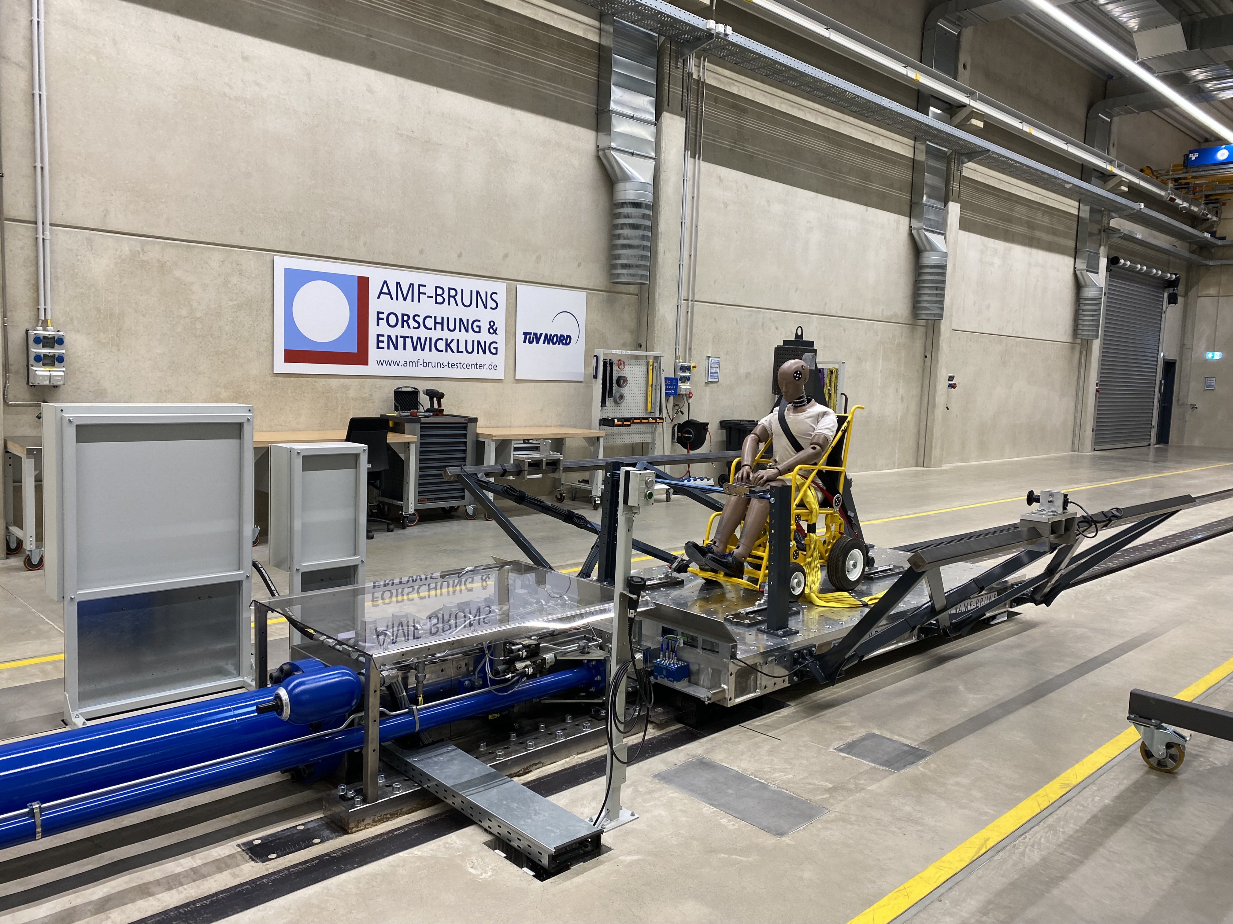 Die AMF-Bruns Forschung & Entwicklung (F u. E) ist eine unabhängige Gesellschaft, deren Fokus auf der Forschung und Entwicklung im Bereich Mobilität liegt. Das Herzstück des Kompetenzzentrums ist eine dynamische Crashtestanlage mit Schlittensystem und hochmodernen Instrumenten. Die Leistungsfähige Schlittentechnologie ermöglicht es, Unfallszenarien zu simulieren und Zusammenstöße realitätsnah darzustellen. So können unter anderem Prüforganisationen, Automobilhersteller, Rollstuhlhersteller, Sitzhersteller, Fahrzeugaufbauhersteller und Produzenten von sicherheitsrelevanten Fahrzeugkomponenten, wie beispielsweise von Gurtsystemen und Kindersitzen, die Sicherheit von Produkten testen und diese weiterentwickeln. Für die Aper Gäste wurde ein Crashtest vorgeführt und im Nachgang anhand einer Videoanalyse aufgezeigt, welche Kräfte auf den Dummy wirken. „Diese Anlage in Apen bestaunen zu können, stellt nochmal heraus, dass wir mit AMF Bruns einen Arbeitgeber und Gewerbesteuerzahler haben, der auf seine bewährten Standbeine setzt, aber auch keine Chance verstreichen lässt mit modernster Technik, Forschung und innovativen Ideen aus dem Ammerland weiterhin Marktführer zu bleiben. Uns als Kommune ist bewusst, dass das Unternehmen damit weltweit Maßstäbe für eine noch sichere Mobilität setzt und ein absolutes Alleinstellungsmerkmal aus Apen damit bildet“, erklärte Matthias Huber. Der sich dankbar zeigte, wie innovativ AMF-Bruns den Standort ausbaut und in die Zukunft führt. Die Gemeinde wünscht weiterhin viel Erfolg und die Geschäftsführer, Inhaber und Beschäftigten des größten Aper Unternehmens können natürlich weiterhin bei ihren Anliegen auf ihre natürlich lebenswerte Gemeinde Apen zählen.